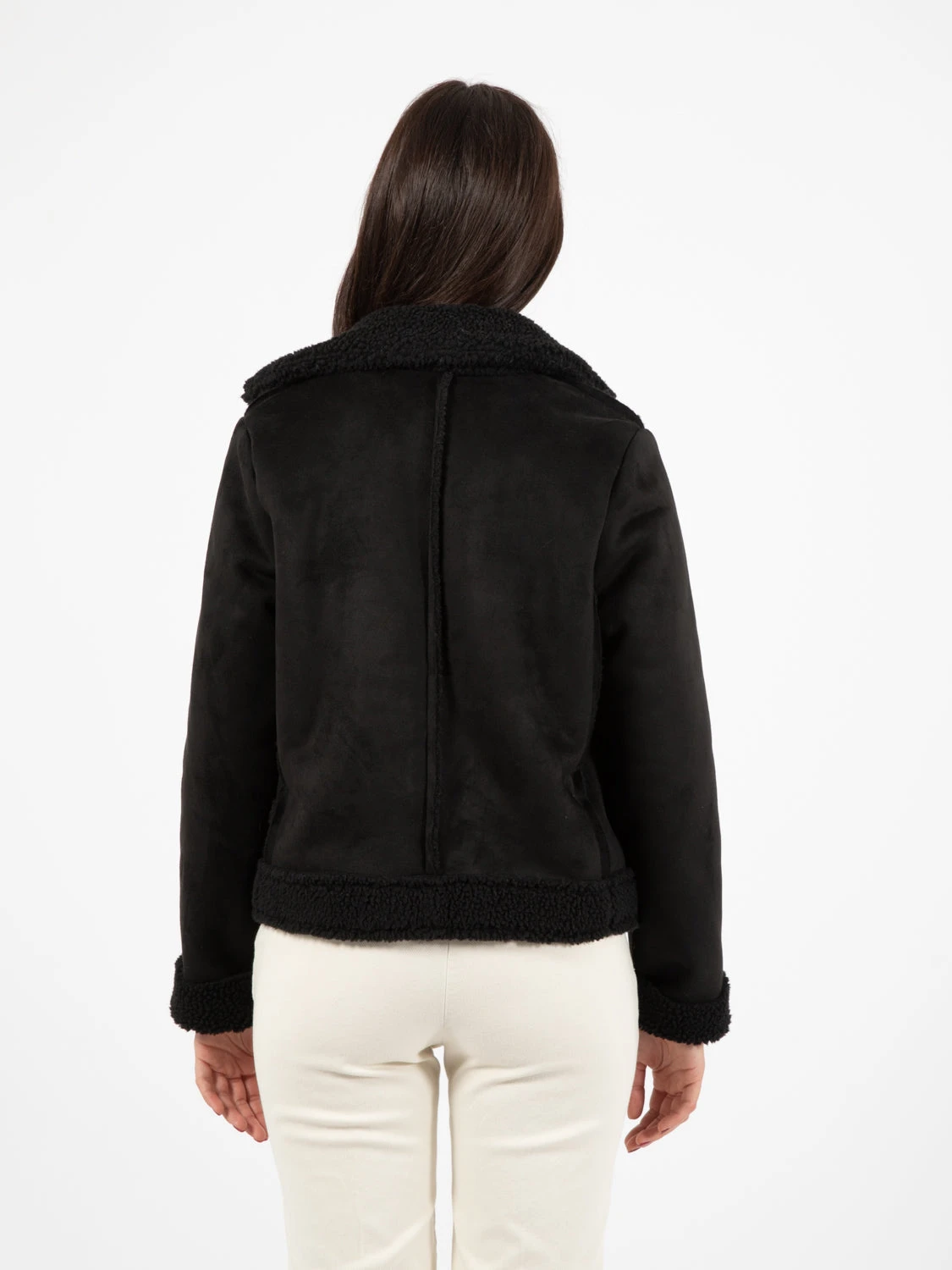 Capo in morbido tessuto con inserti in ecopelliccia.