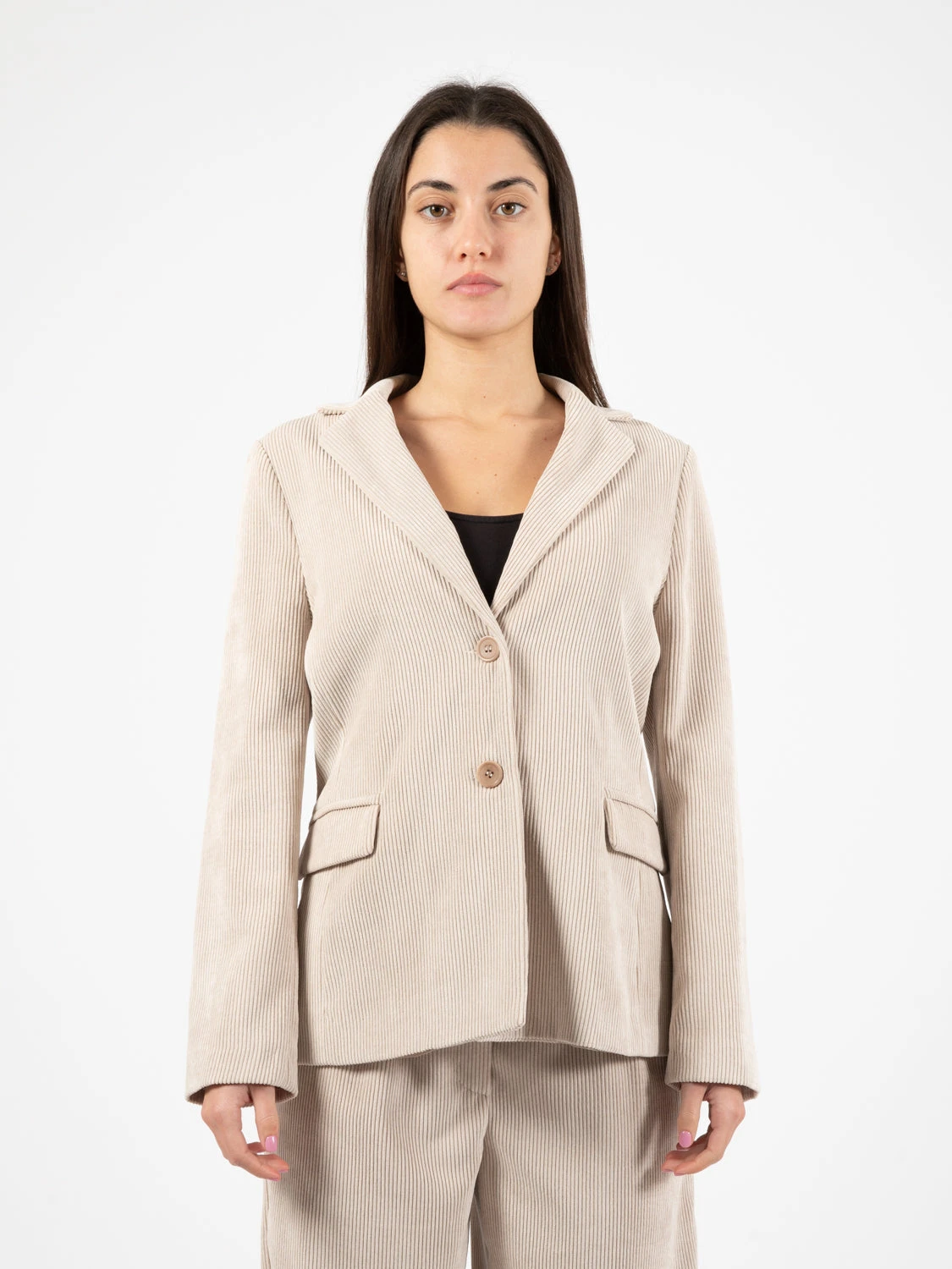 Capo in tessuto a coste con fodera interna.