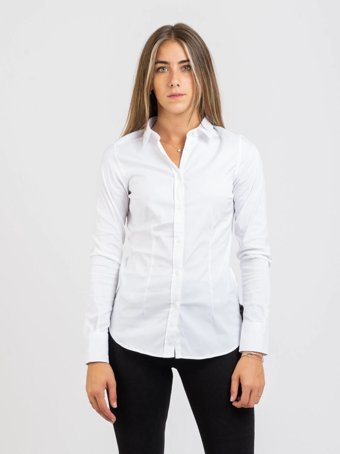 Colletto classico, maniche lunghe con polsini.