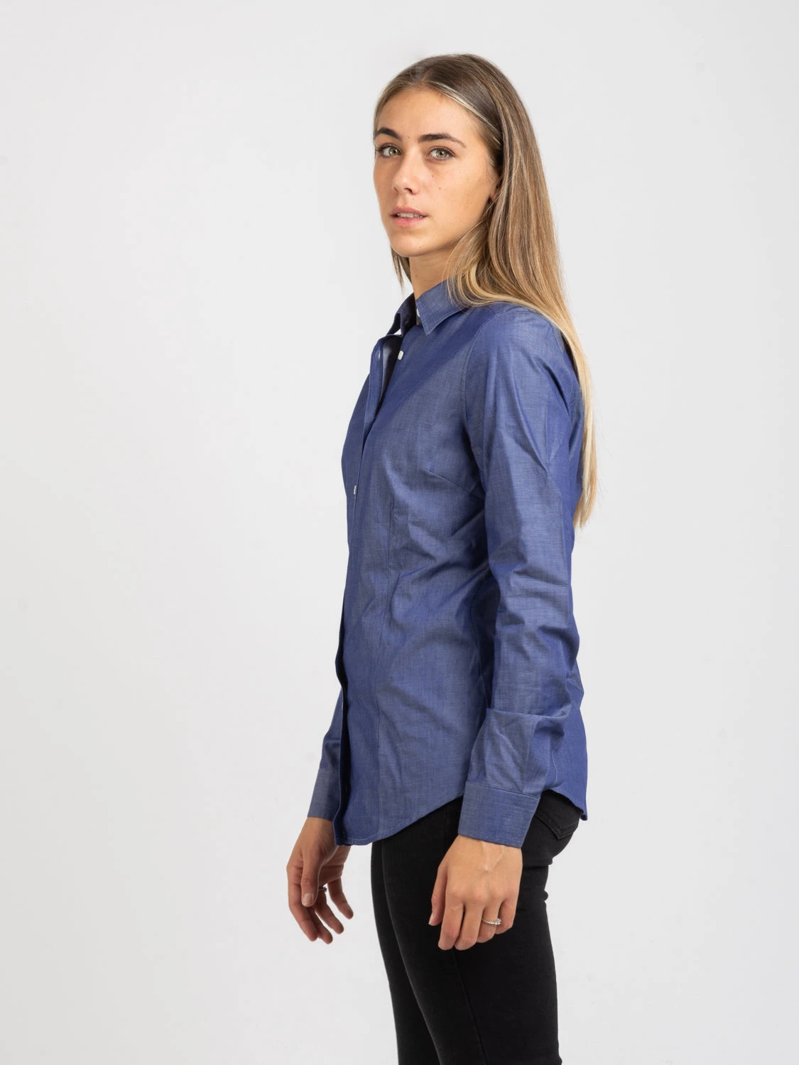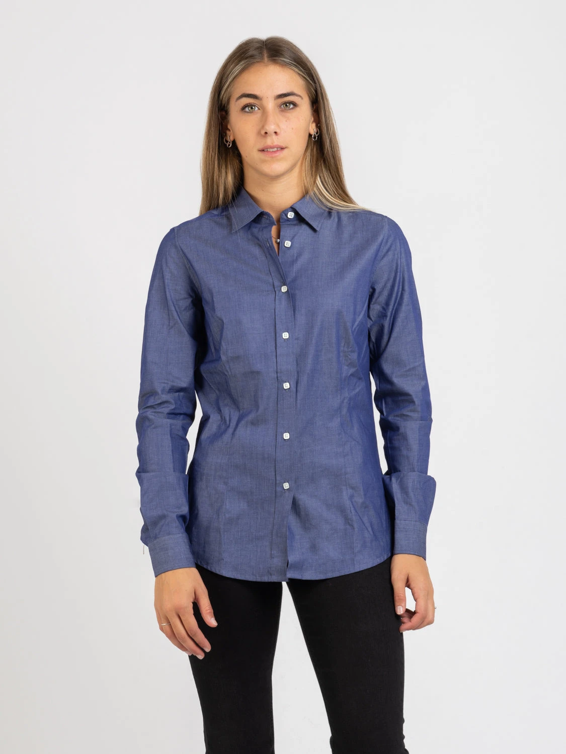 Colletto classico e maniche lunghe.