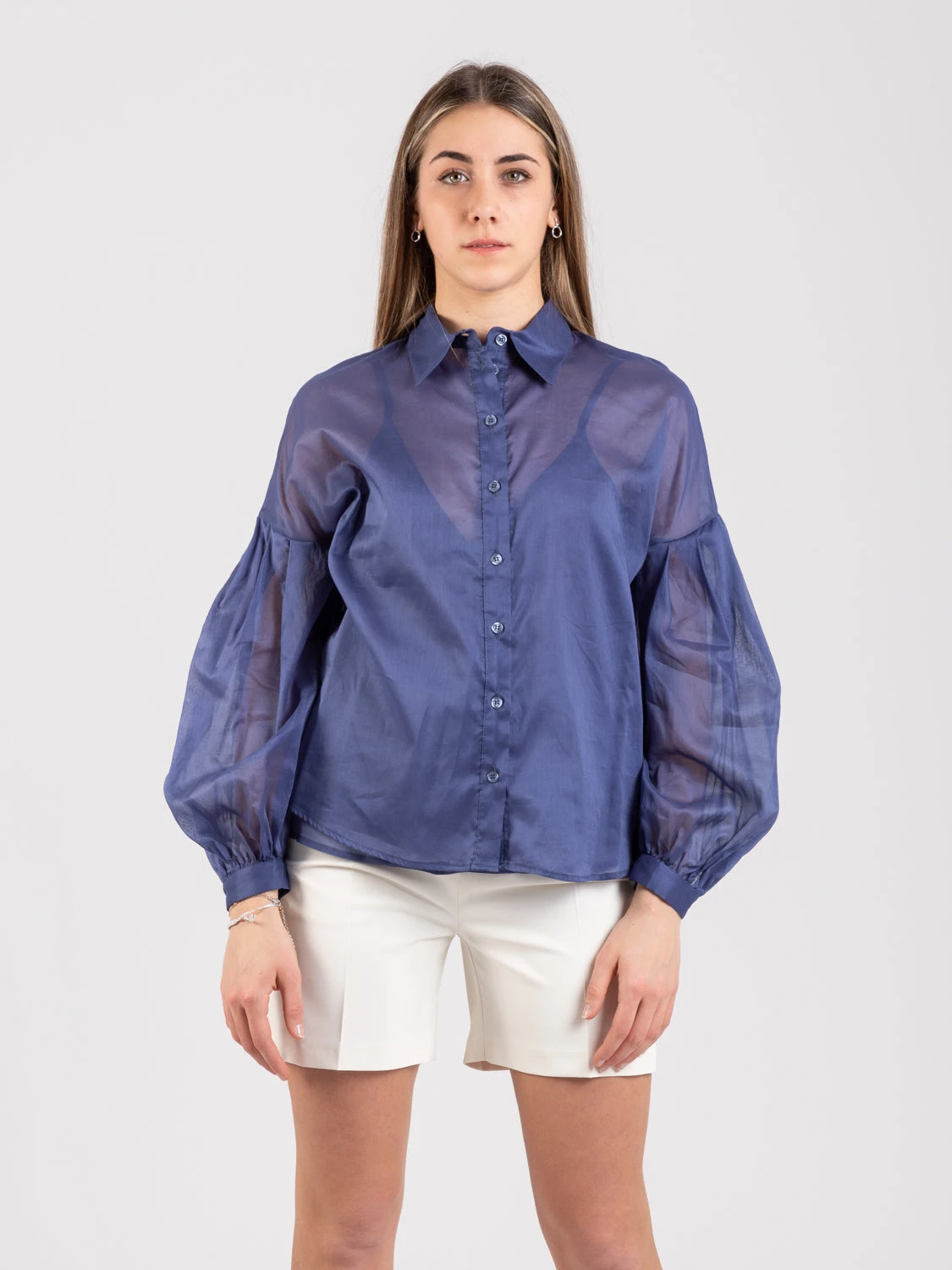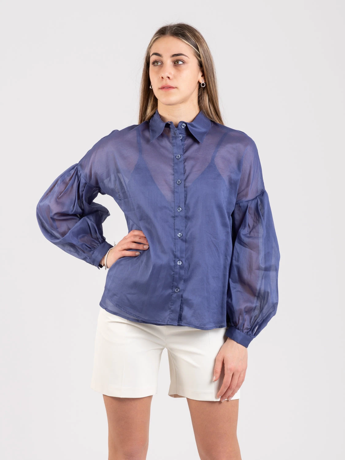 Colletto classico, maniche blusanti lunghe con polsini e spalla scesa.