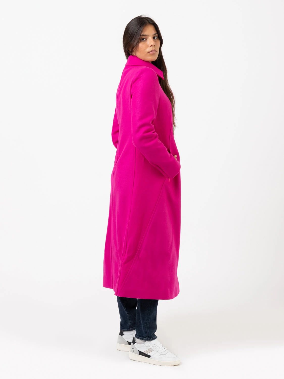 Chiusura con bottoni foderati, tasche laterali a filetto.