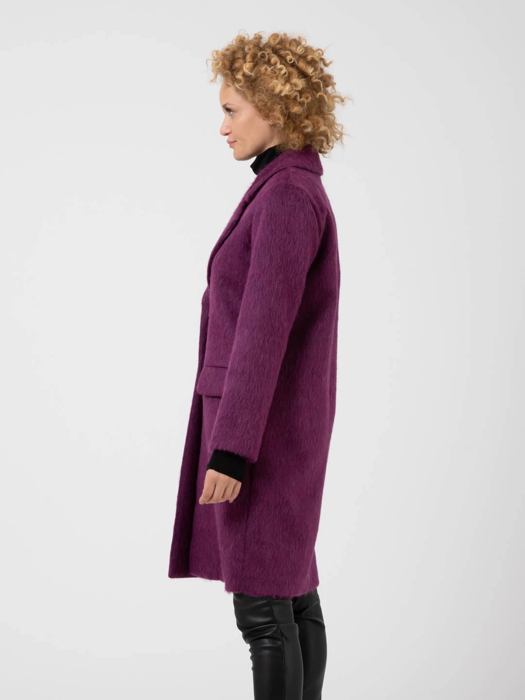 Chiusura con bottoni rivestiti, tasche frontali con patta.