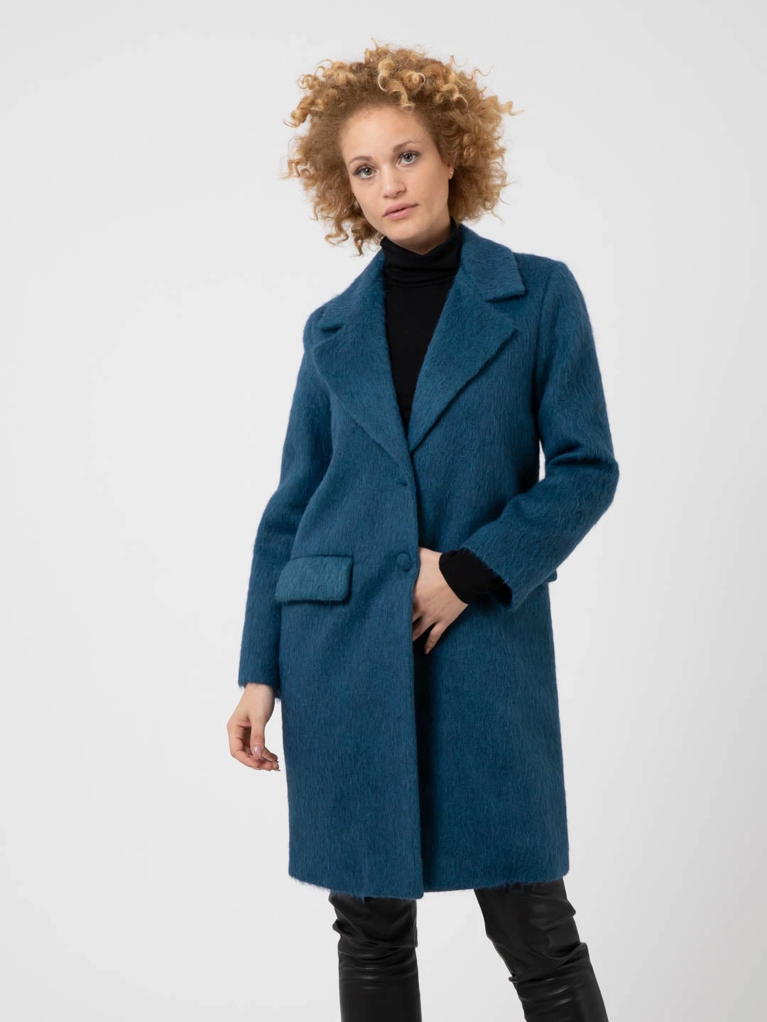 Chiusura con bottoni rivestiti, tasche frontali con patta.