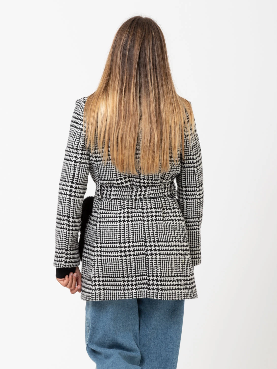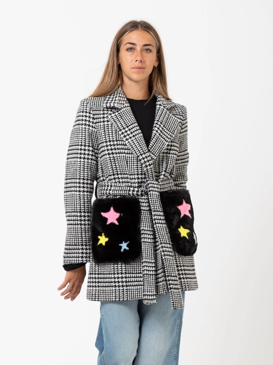 Fantasia pied-de-poule, tasche in ecopelliccia con stelle.