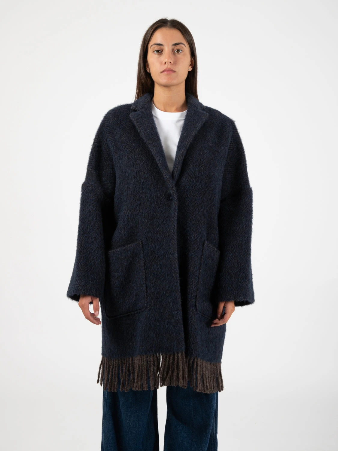 Capo spinato in lana e alpaca, con interno sfoderato.