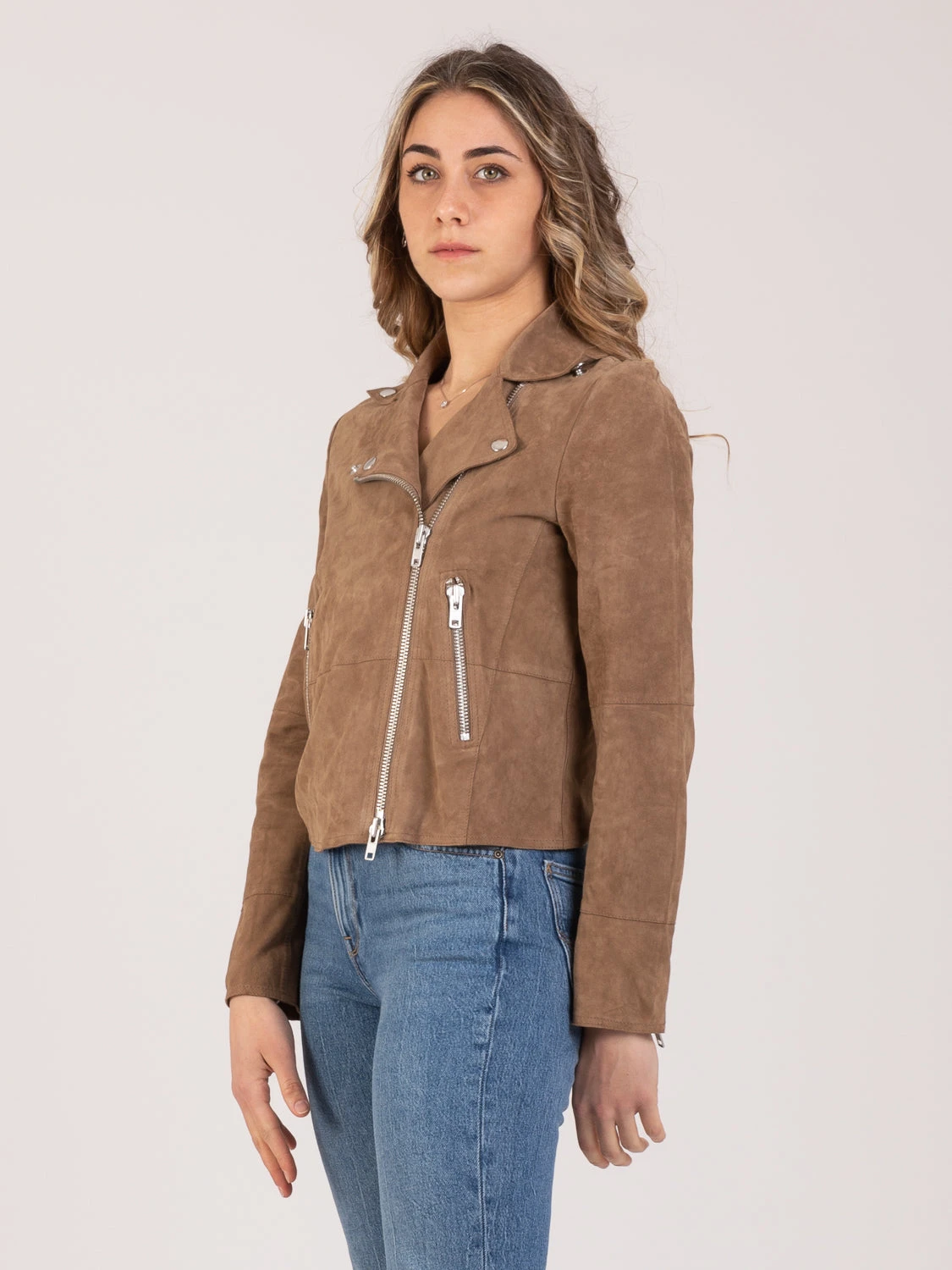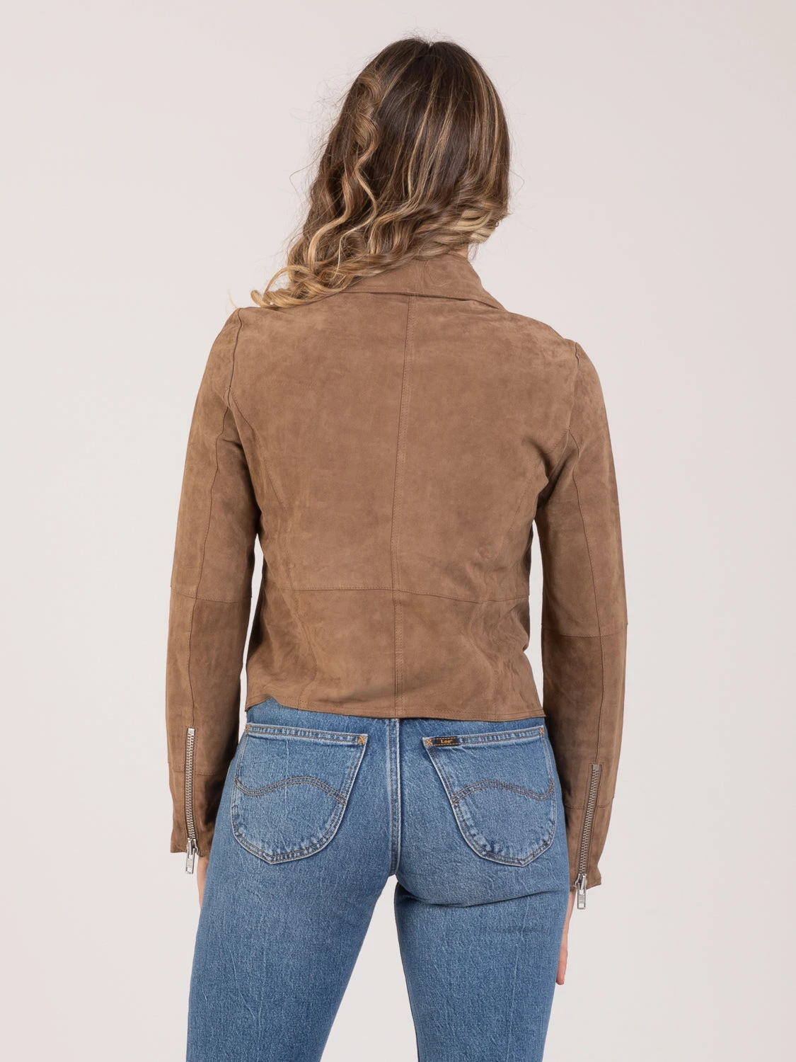 Colletto reverse e maniche lunghe con zip ai polsi.