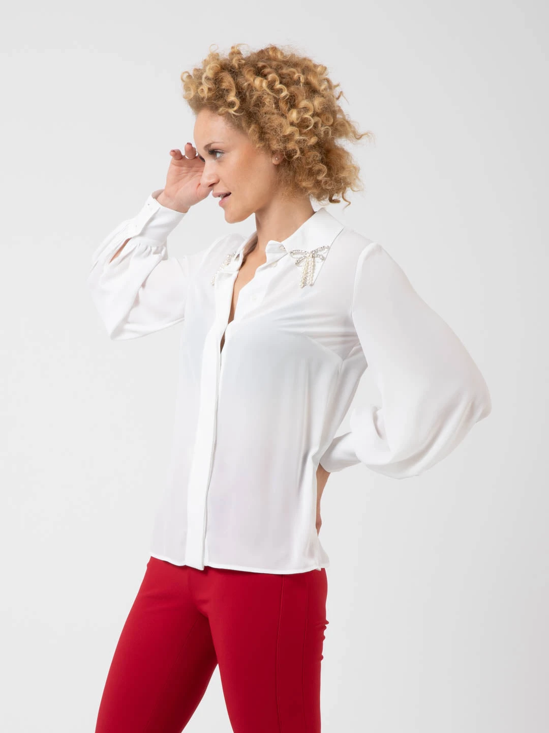 Colletto reverse ricamato con piccoli fiocchi in perle e strass.