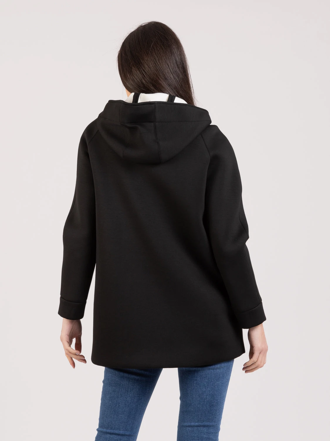 Chiusura con zip, maniche raglan lunghe.