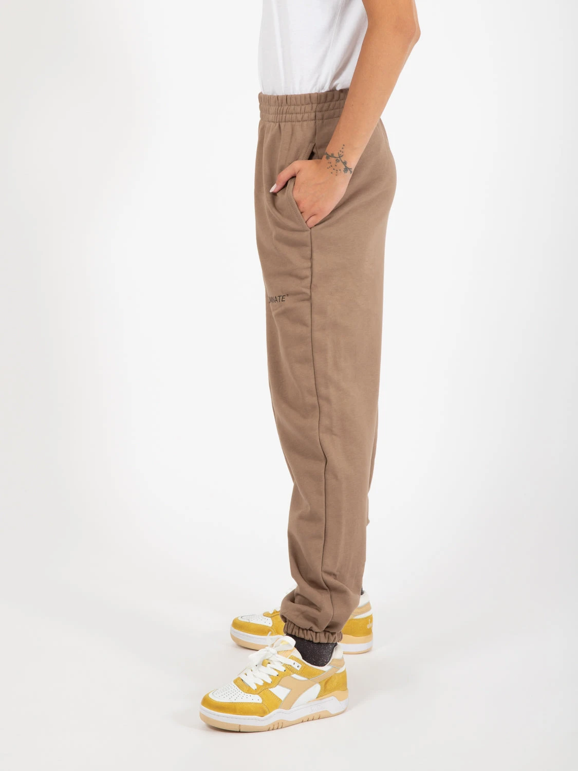 Caviglie con elastico. Logo lettering sulla coscia.