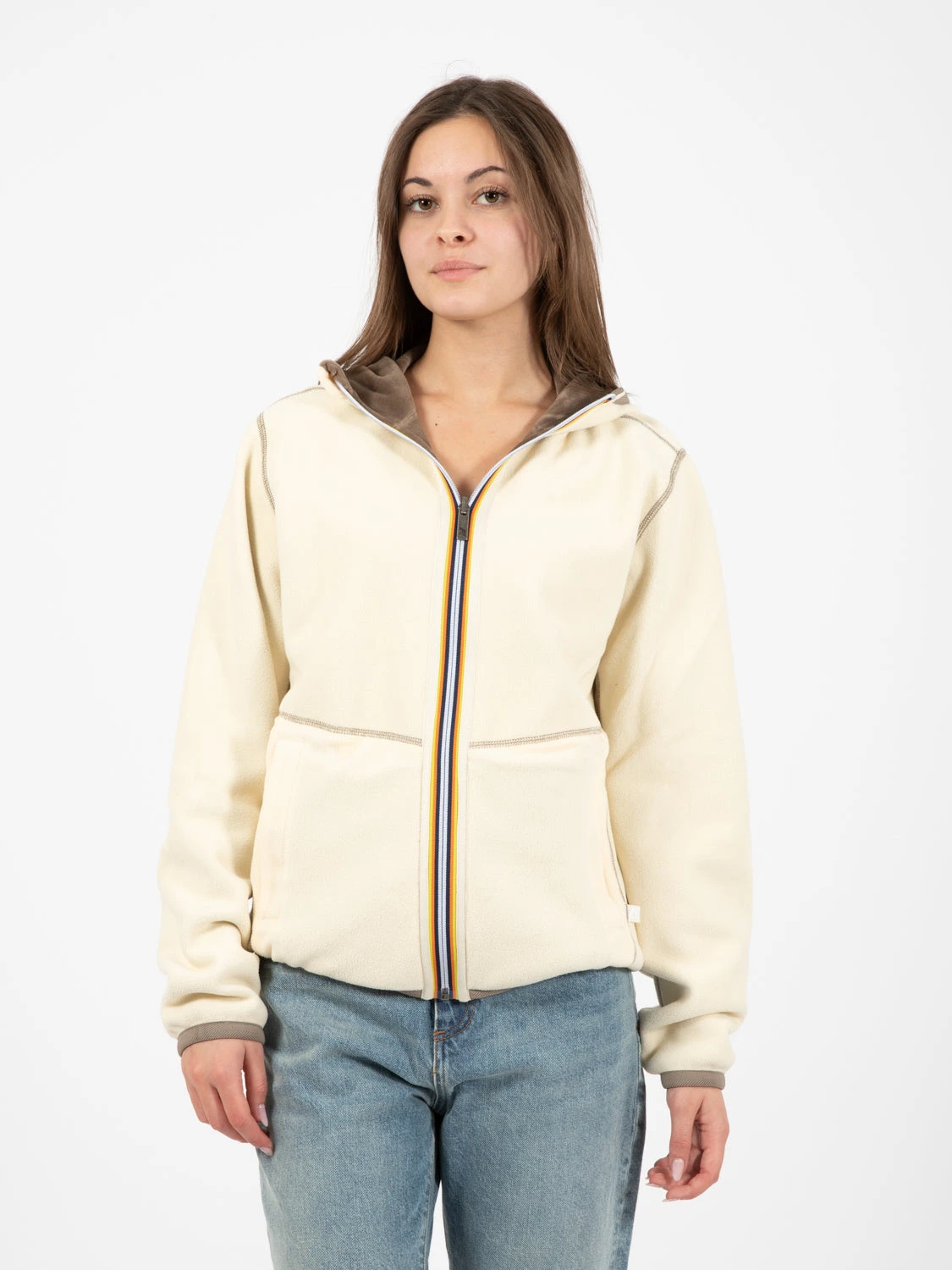 Fondo, polsi e cappuccio rivestiti in tessuto.