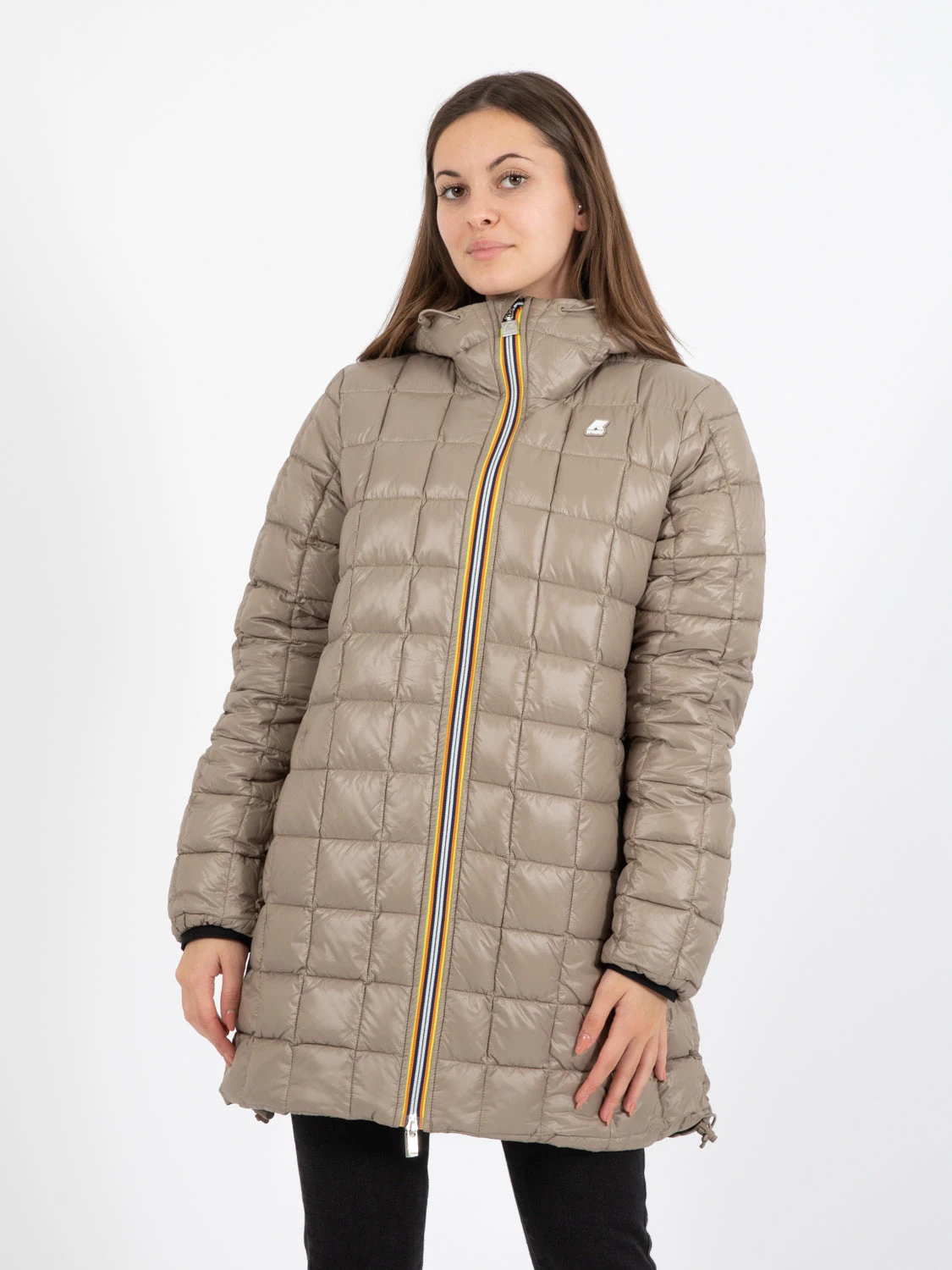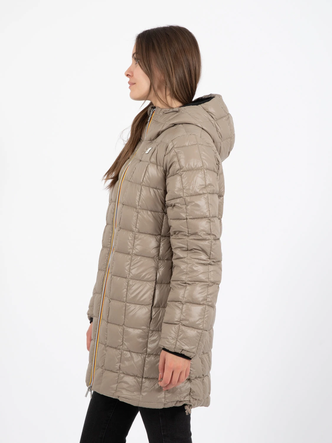 Capo imbottito in nylon opaco impermeabile, idrorepellente e traspirante.