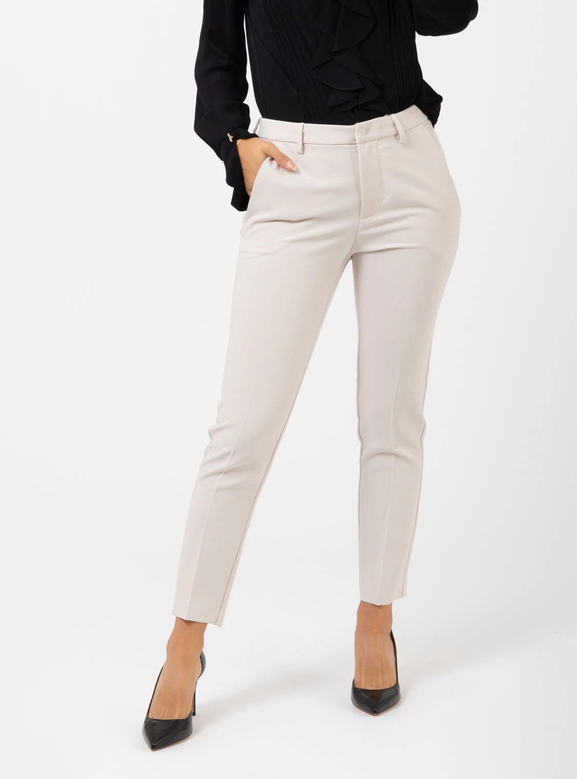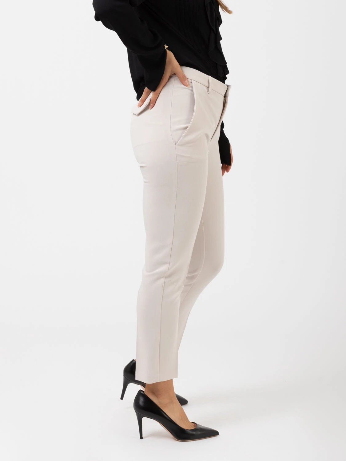 Vita medio alta, chiusura con zip, bottone e gancio.