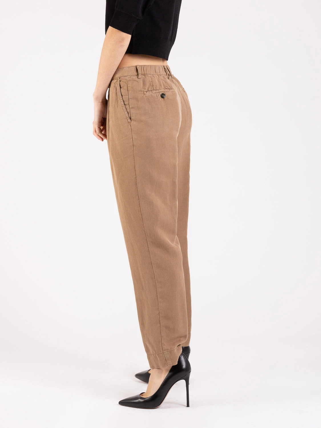 Chiusura con zip e bottone, vita elasticizzata posteriormente.