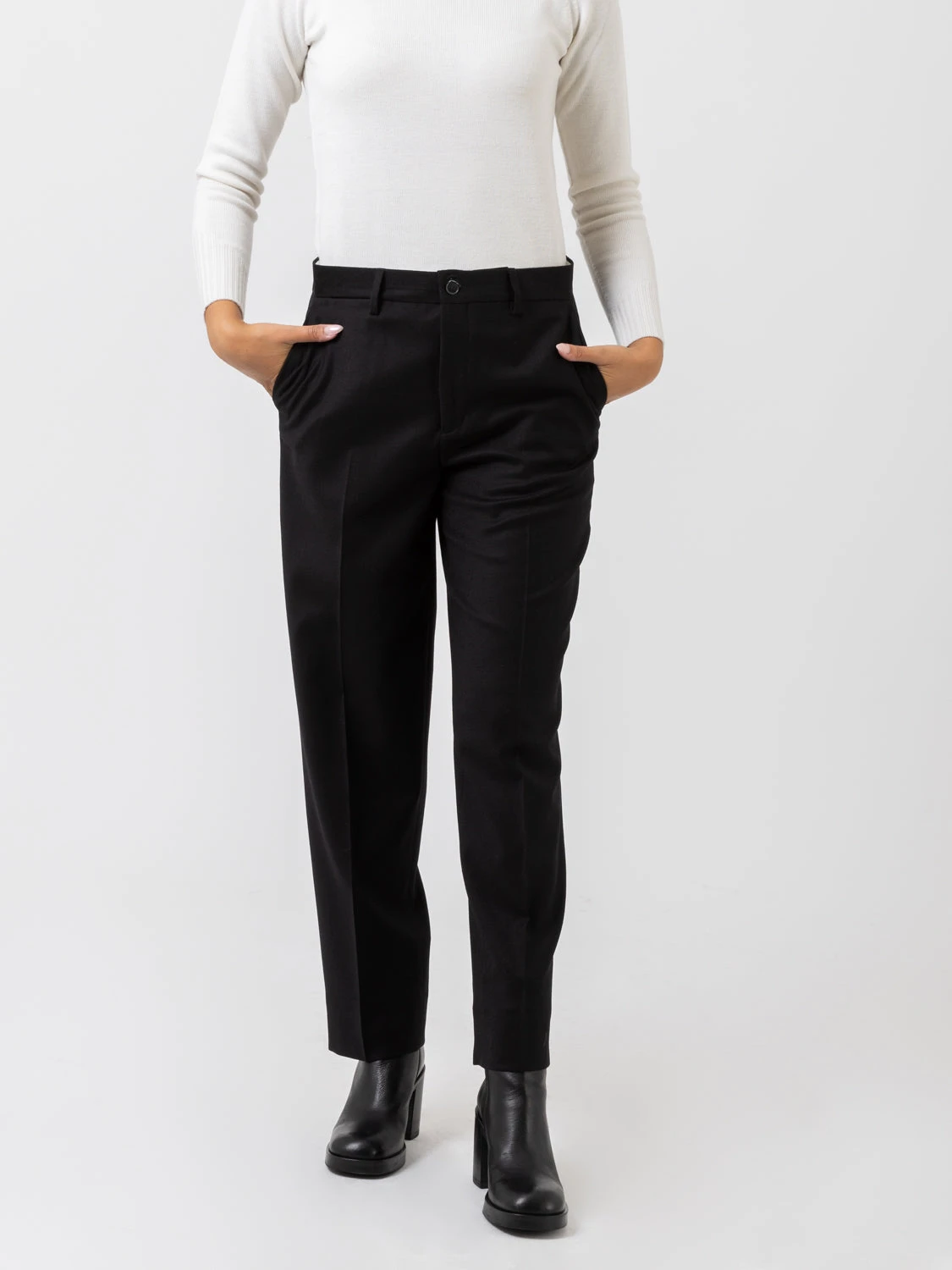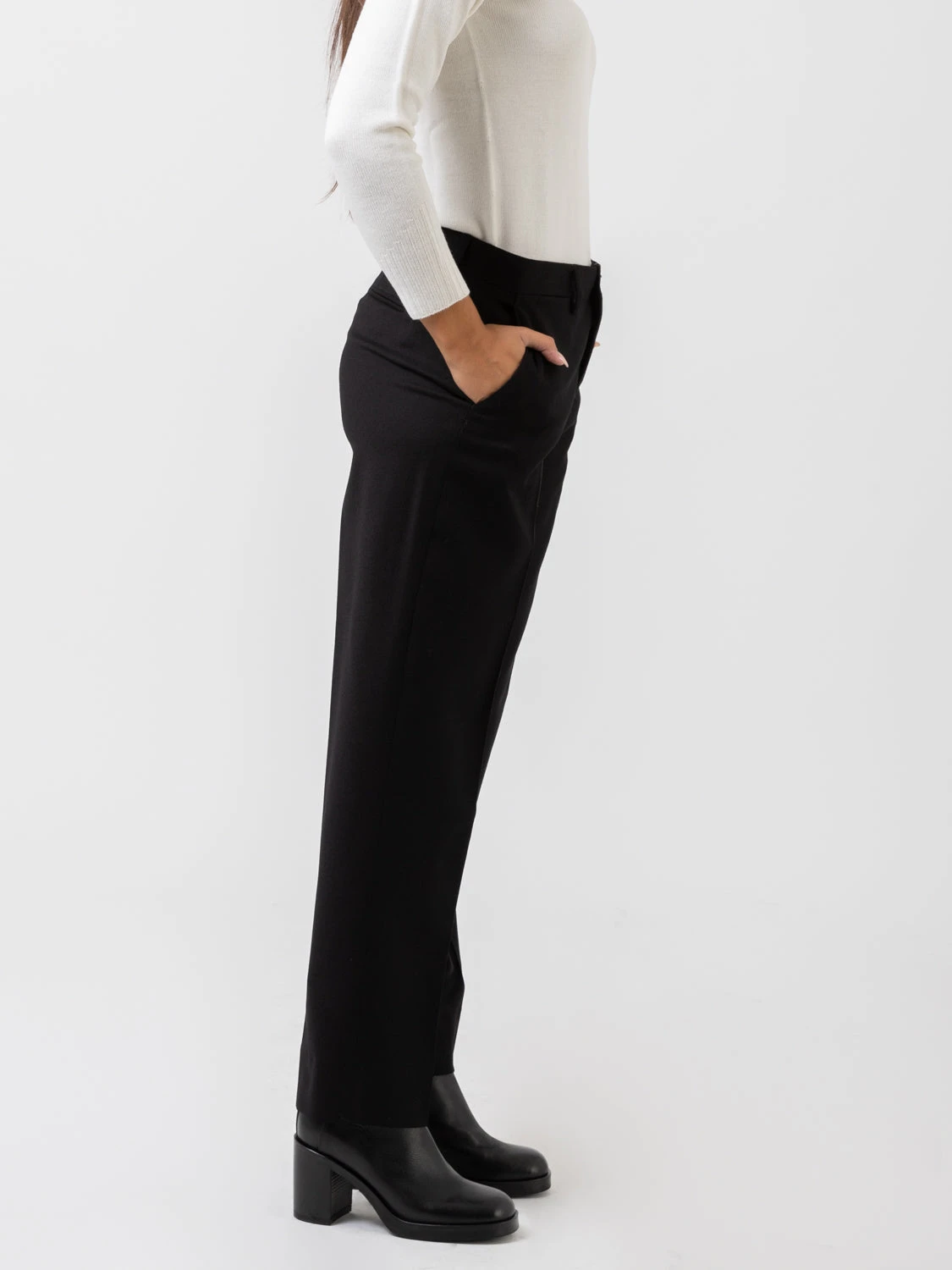 Gamba morbida dritta con piega centrale.