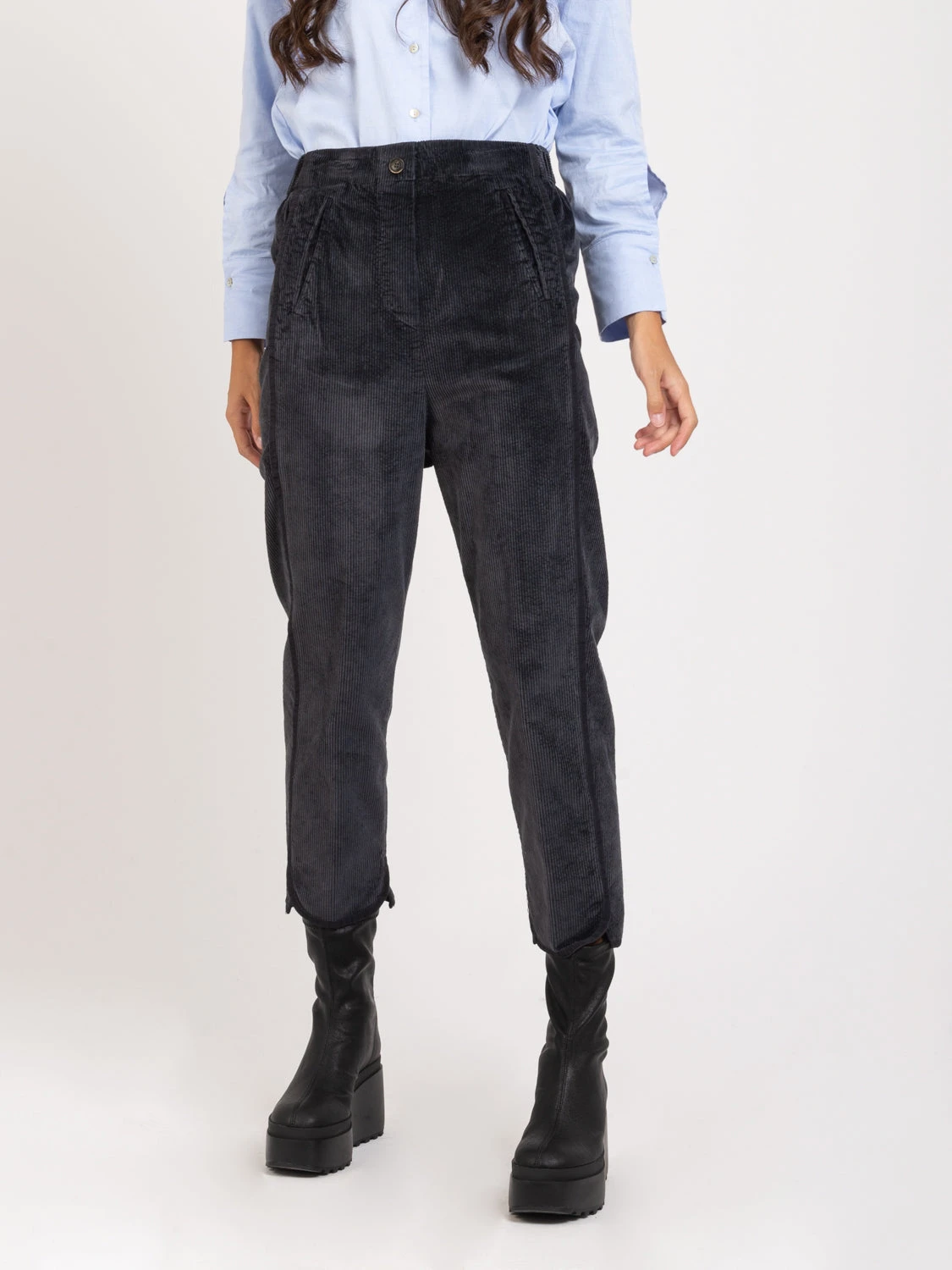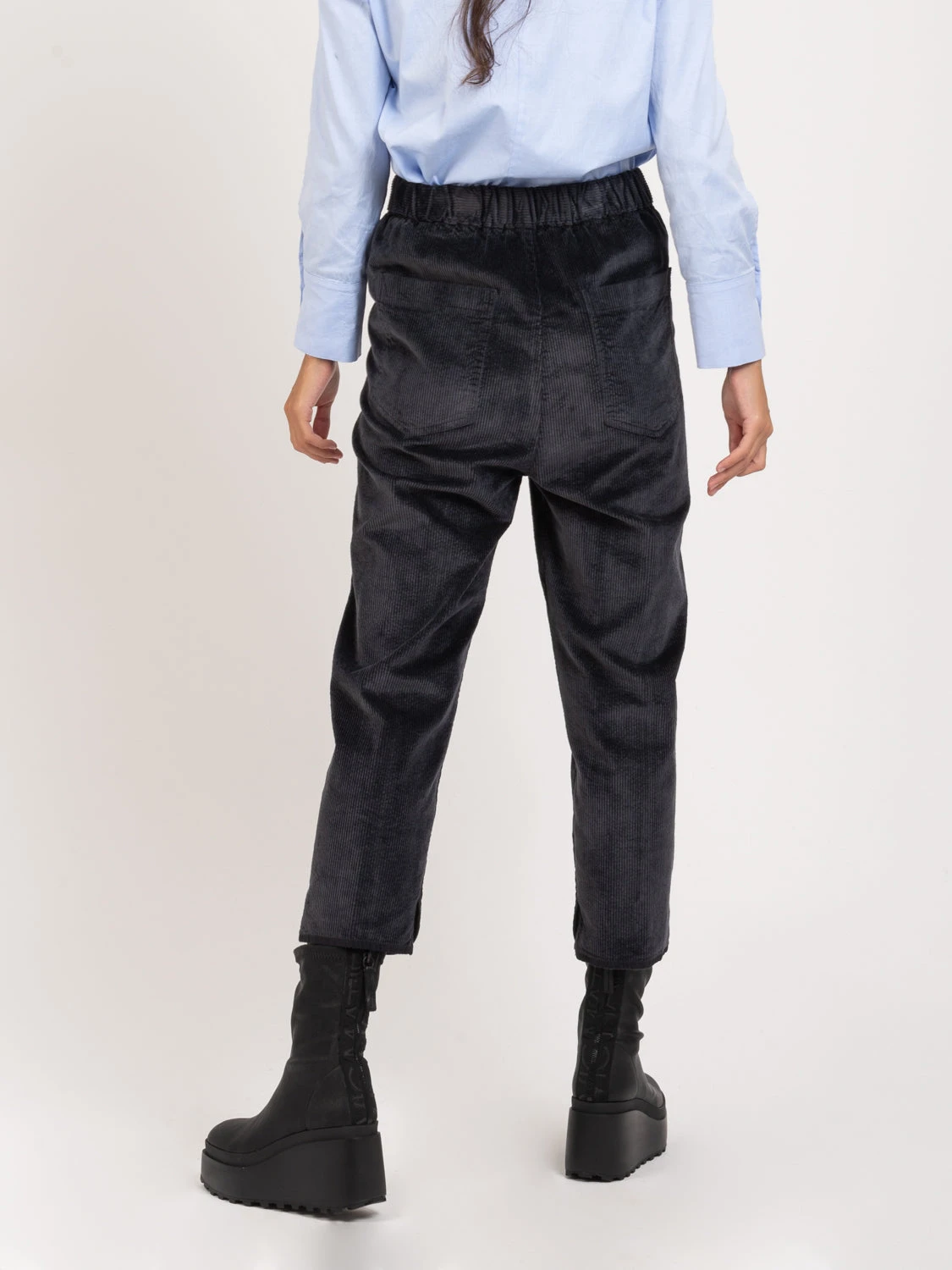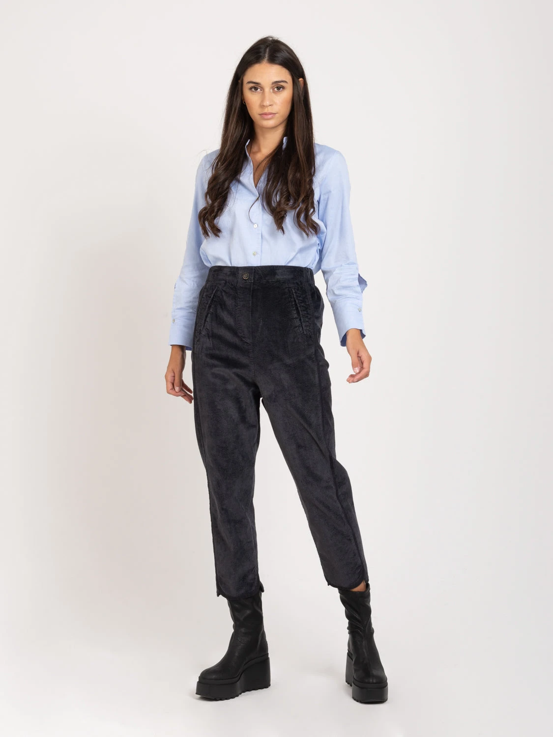 Fina banda in gros-grain tono su tono ai lati delle gambe.