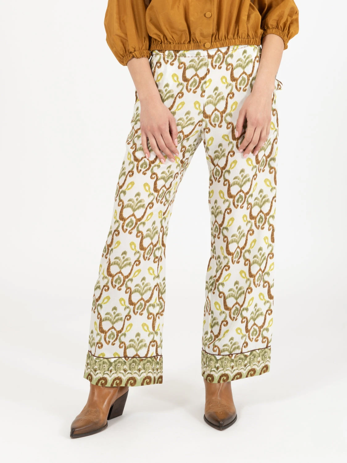 Elastico in vita e ricamo fatto a mano sul davanti.