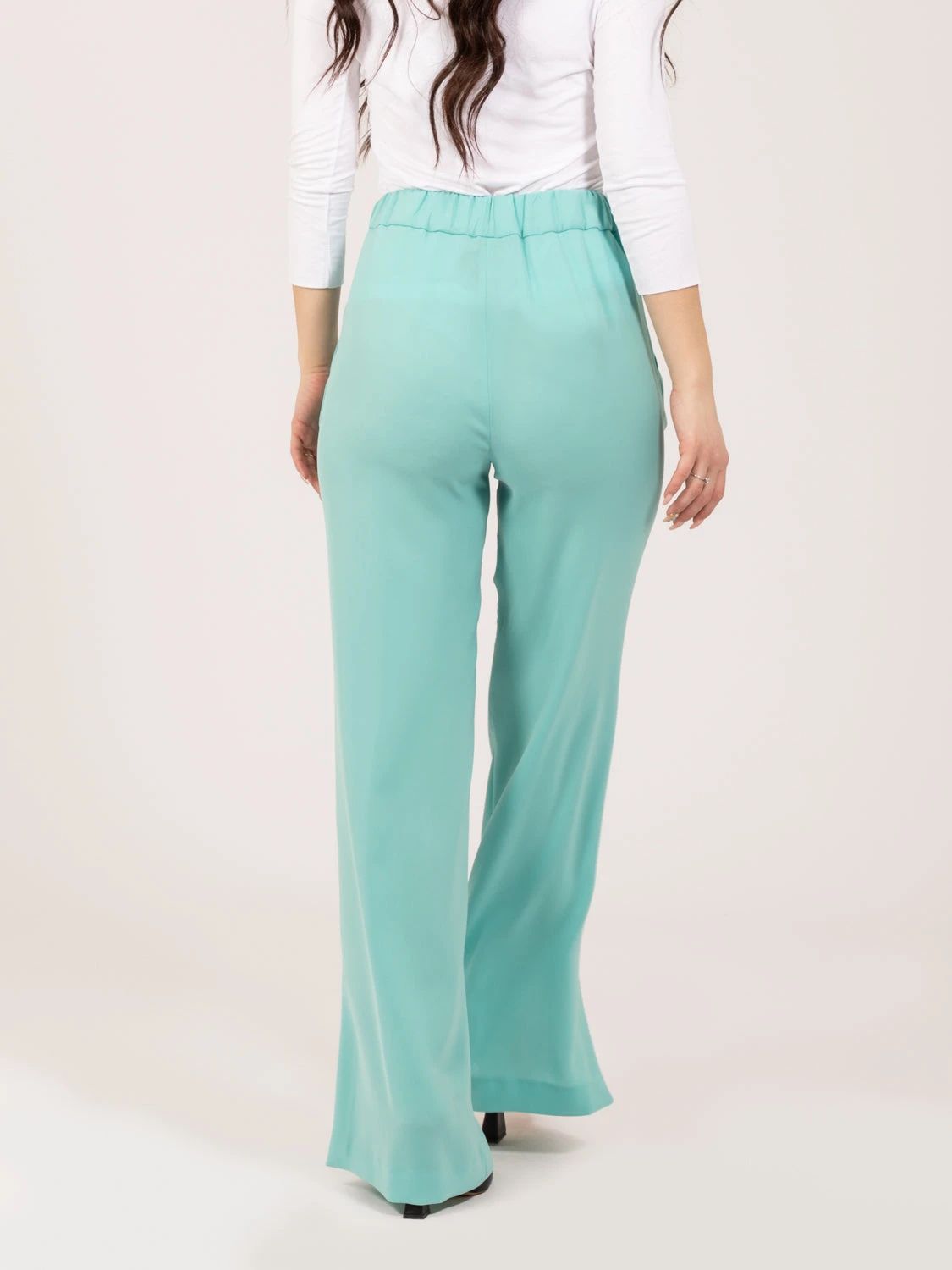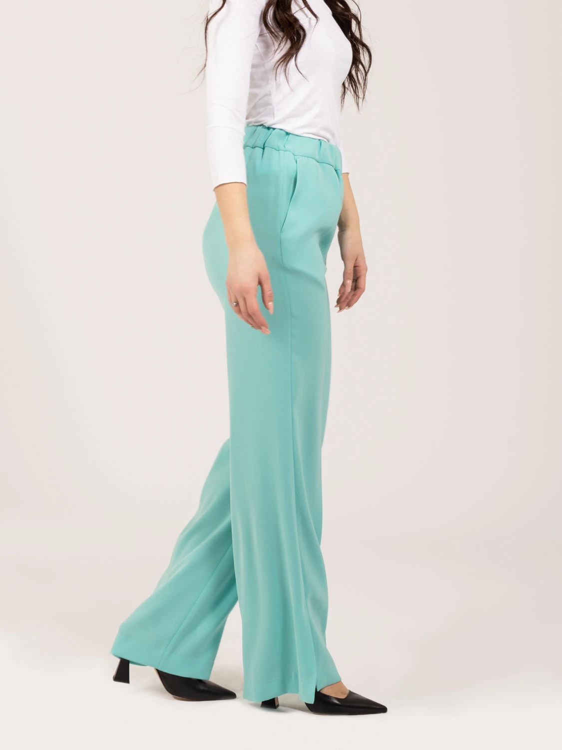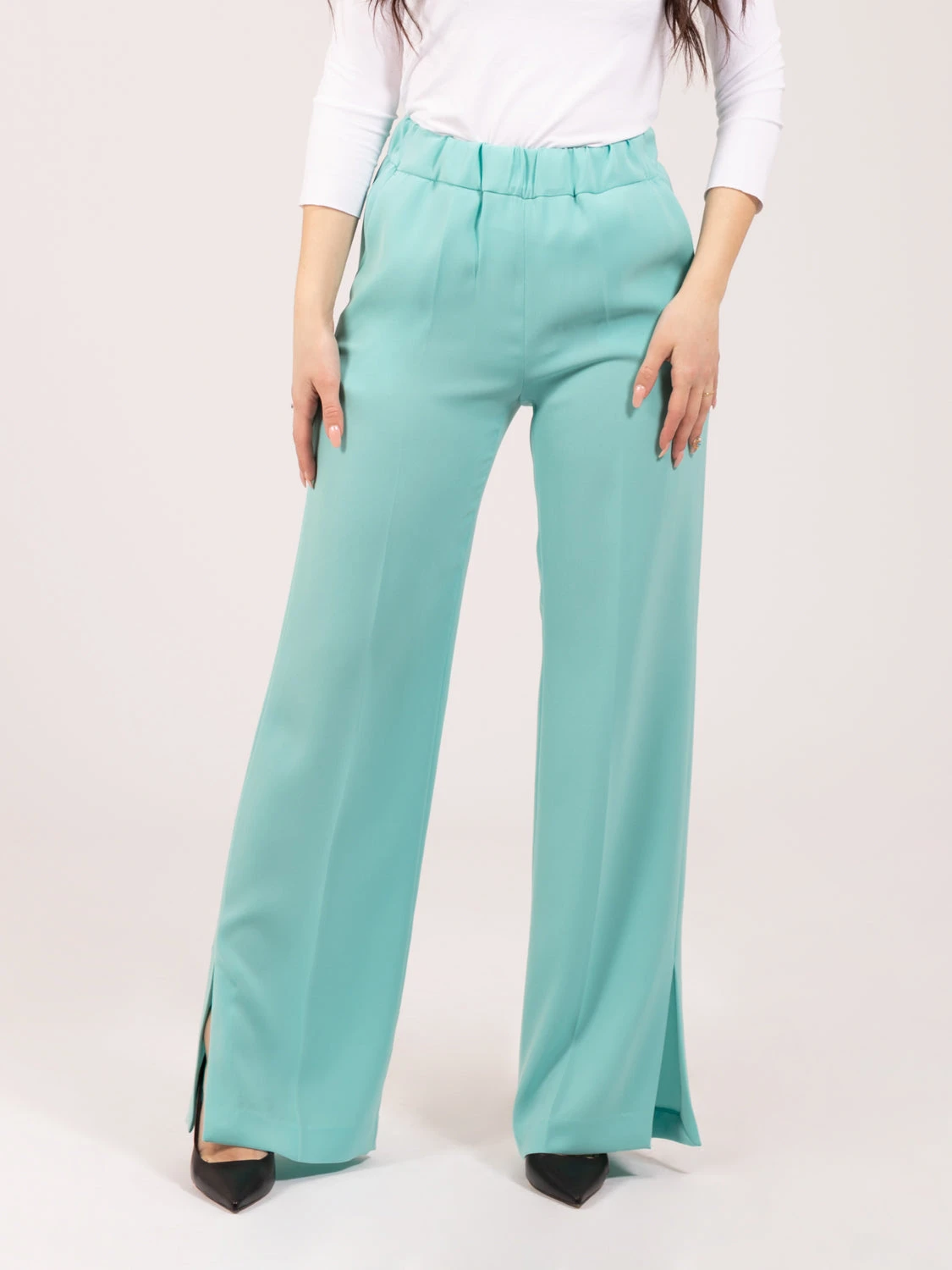 Vita elasticizzata, tasche laterali a filetto.