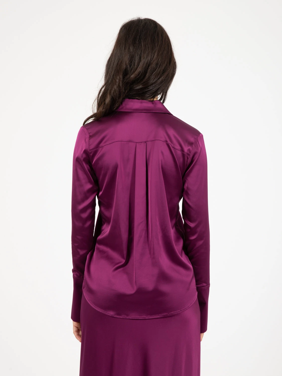 Capo in raso lucido di viscosa stretch.