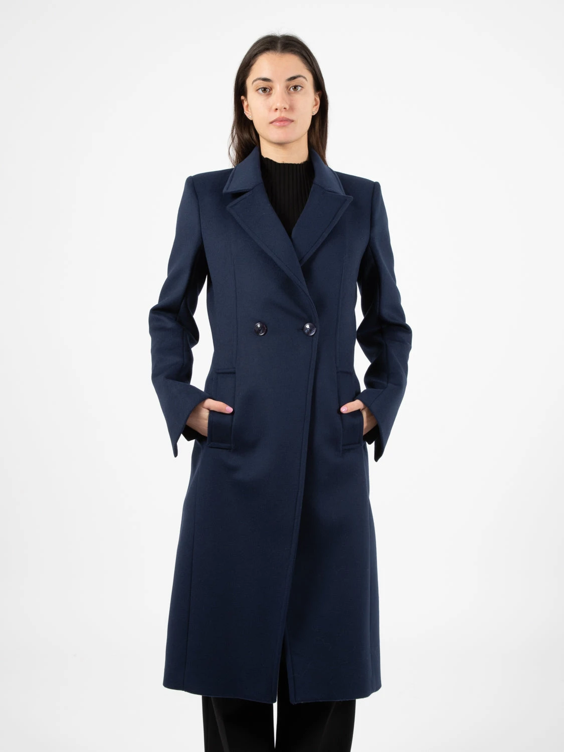Chiusura doppiopetto a due bottoni.