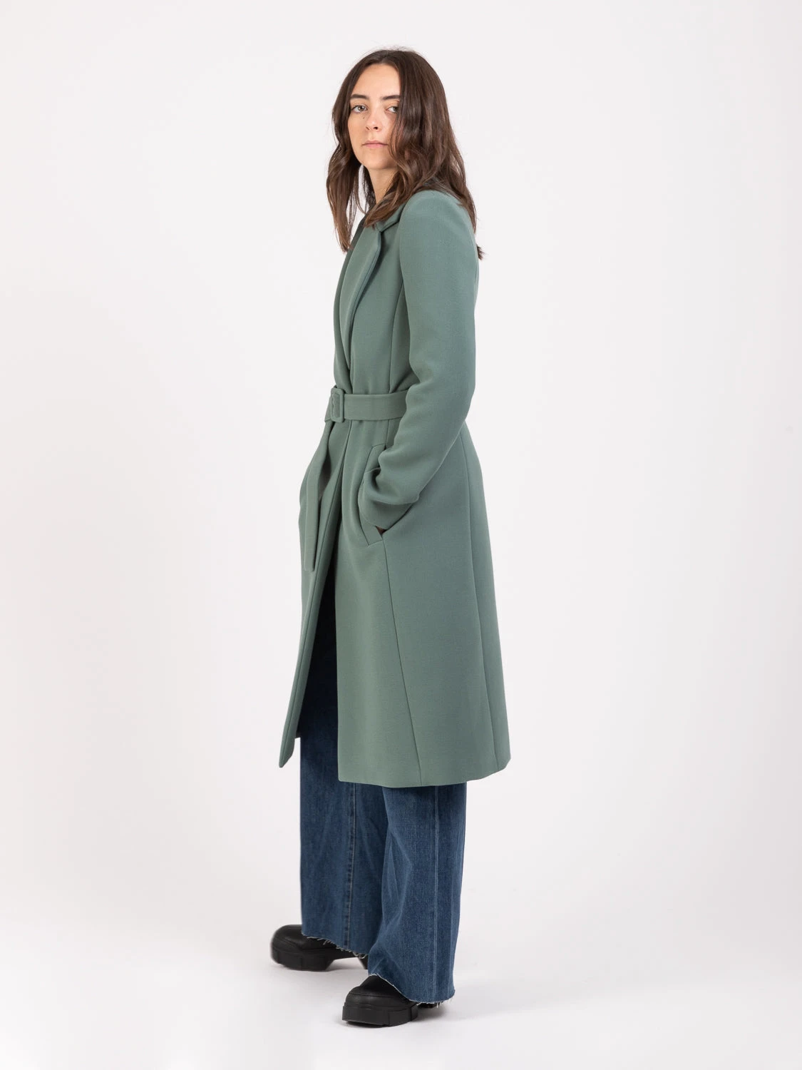 Cintura rimovibile con fibbia rivestita in tessuto.