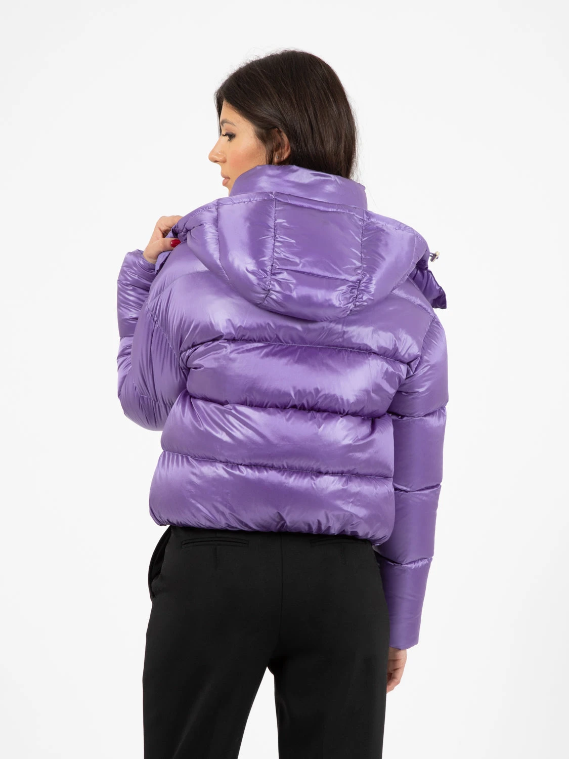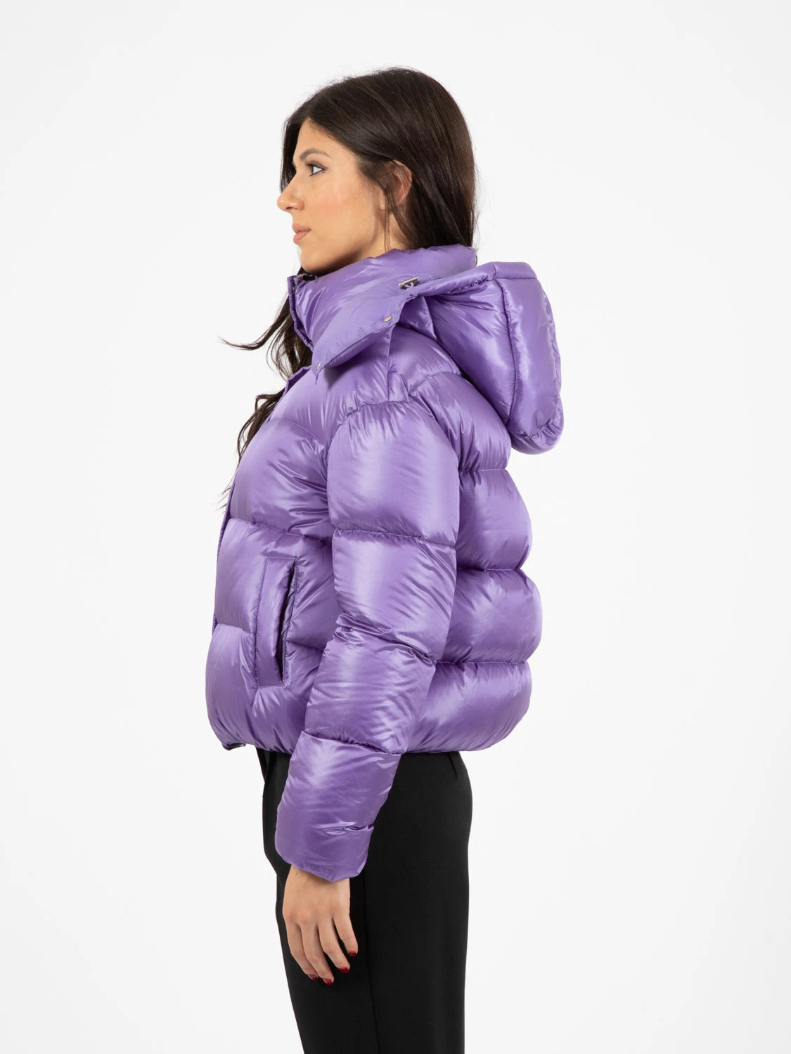 Capo in nylon lucido ultralight trapuntato.