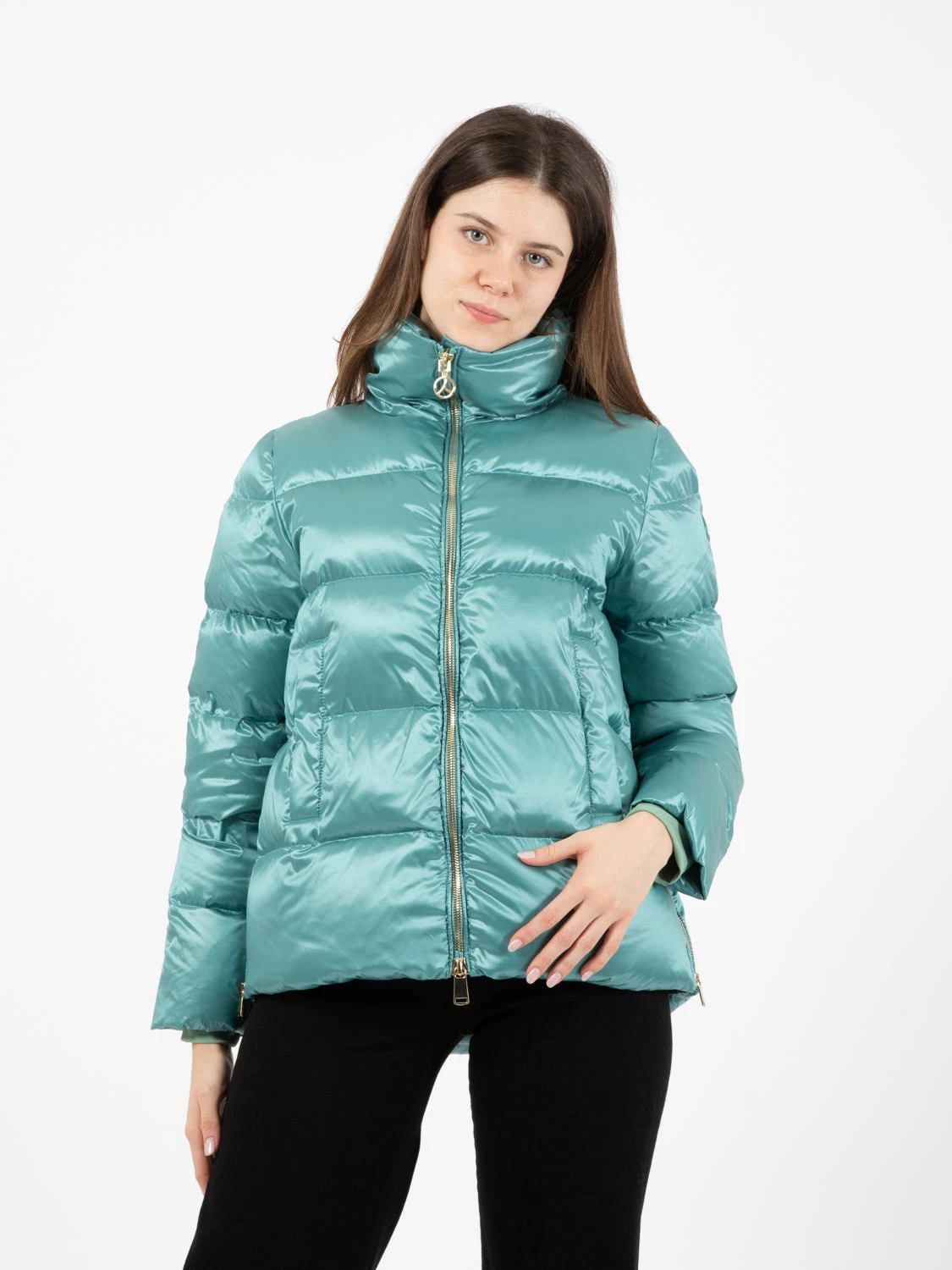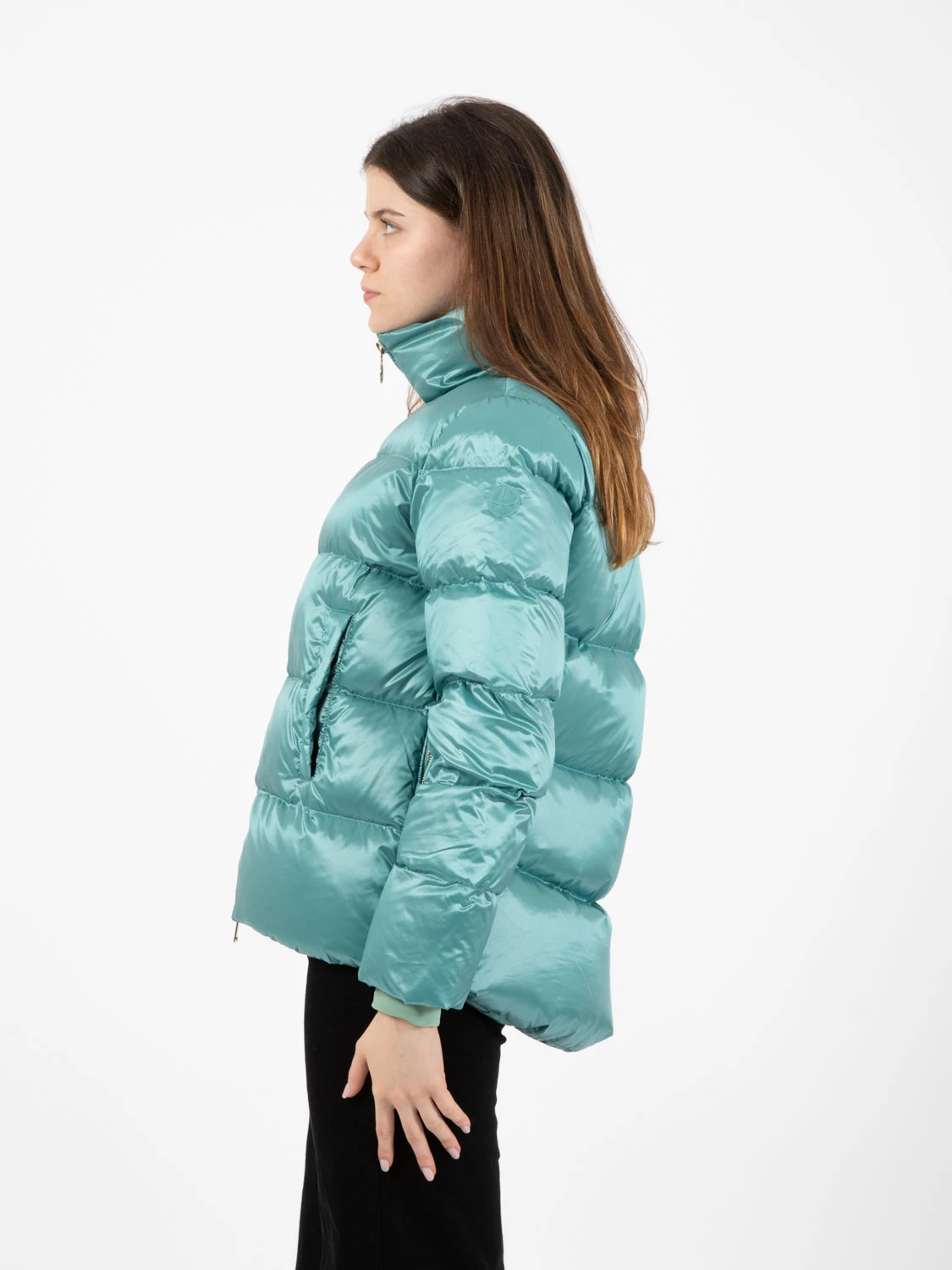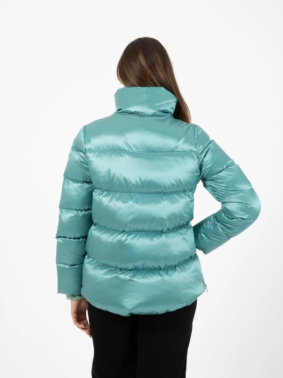 Collo alto imbottito e chiusura con zip doppio cursore.