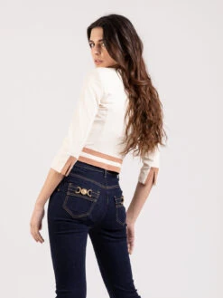 Elisabetta Franchi Giacca Safari Avorio Con Maxi Catena E Logo