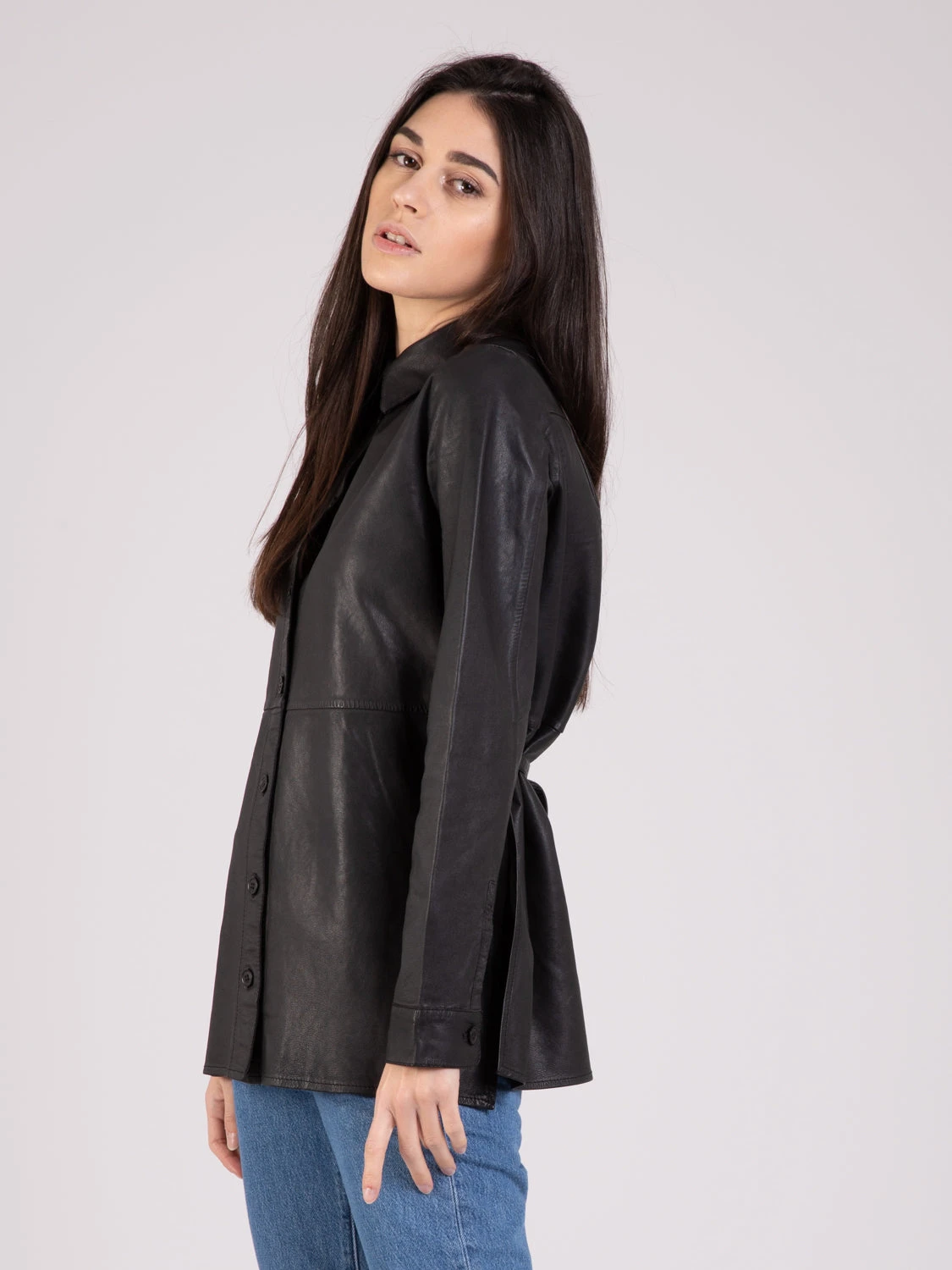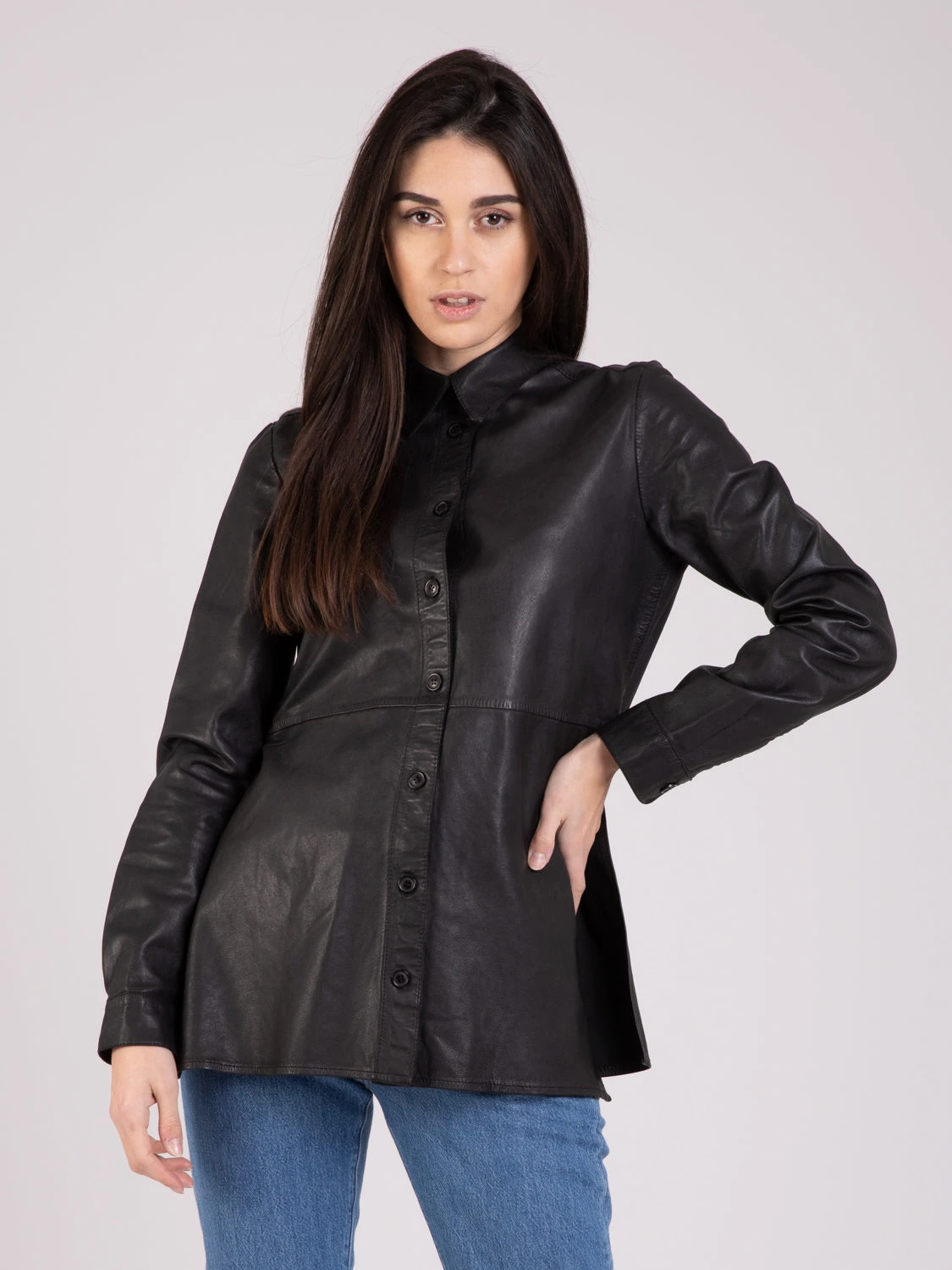 Colletto reverse e maniche lunghe con polsini, chiusura con bottoni.