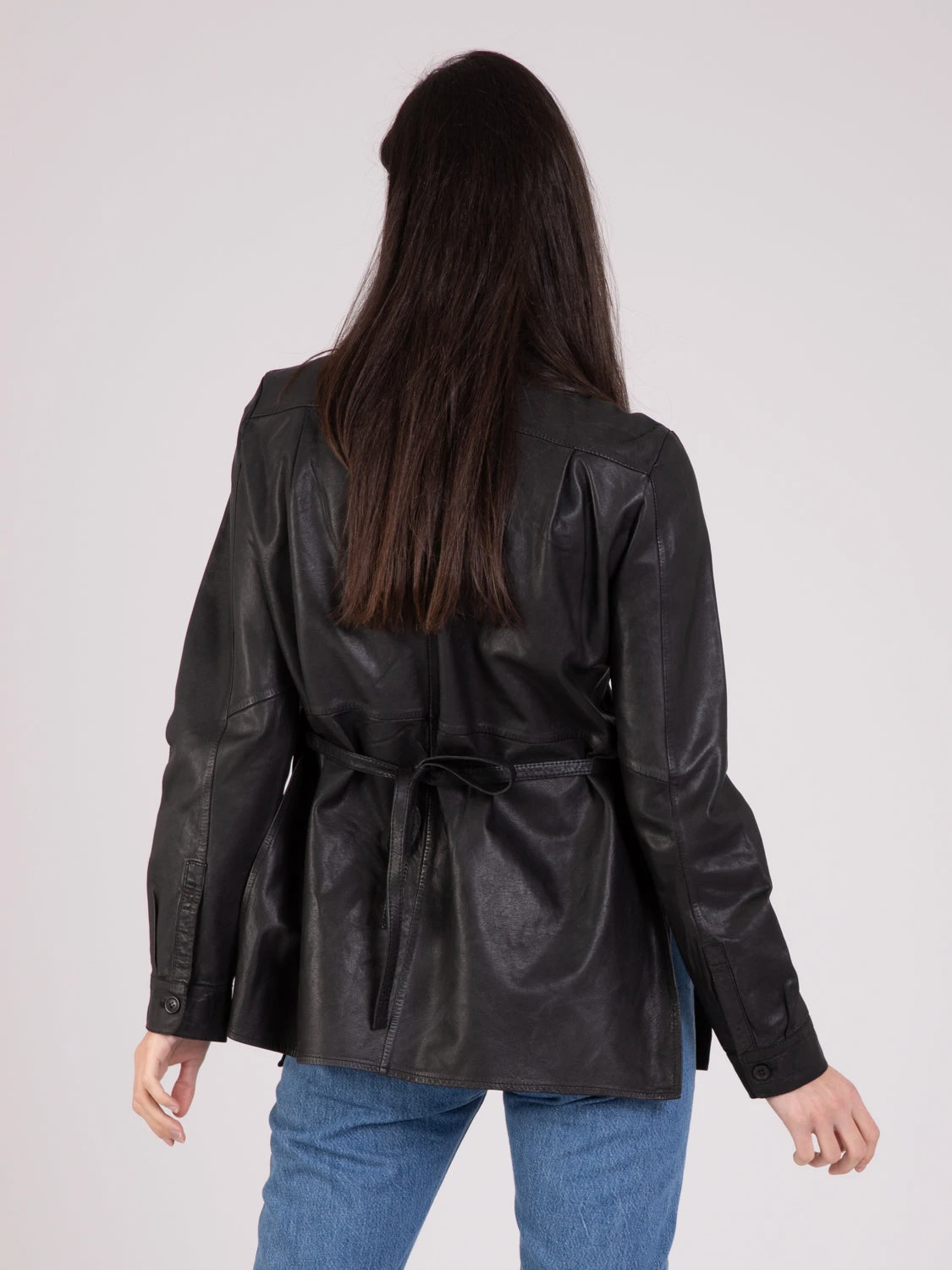 Maxi spacchi laterali e cintura interna da annodare in vita passando esternamente.