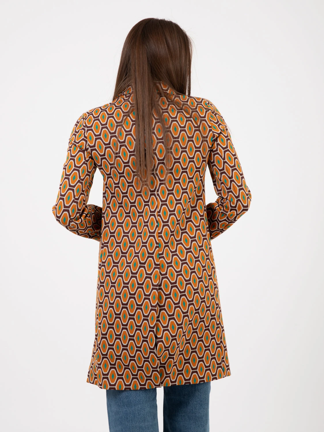 Bavero classico e maniche lunghe.