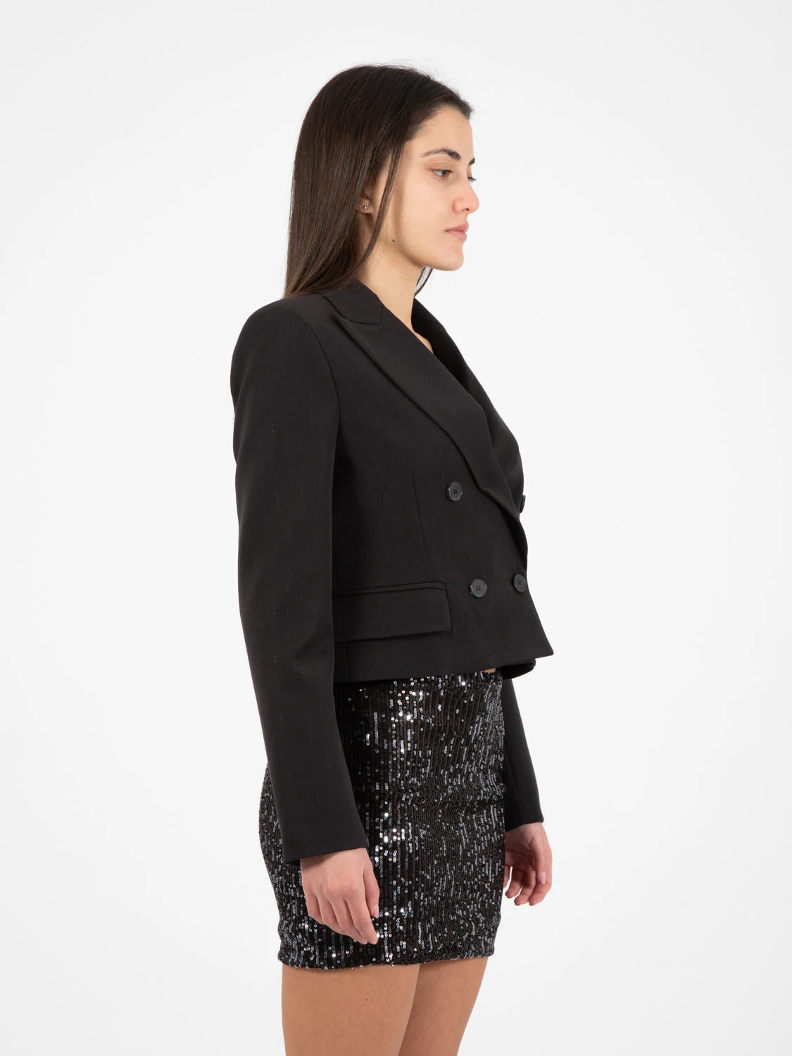 Capo in tessuto gessato lurex.