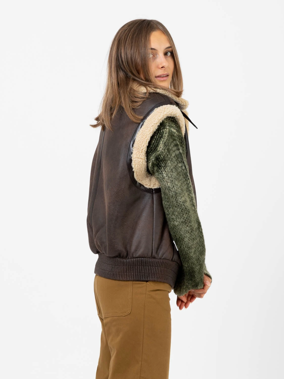 Ecopelle cracklé con interno e bordi in swee-fur.