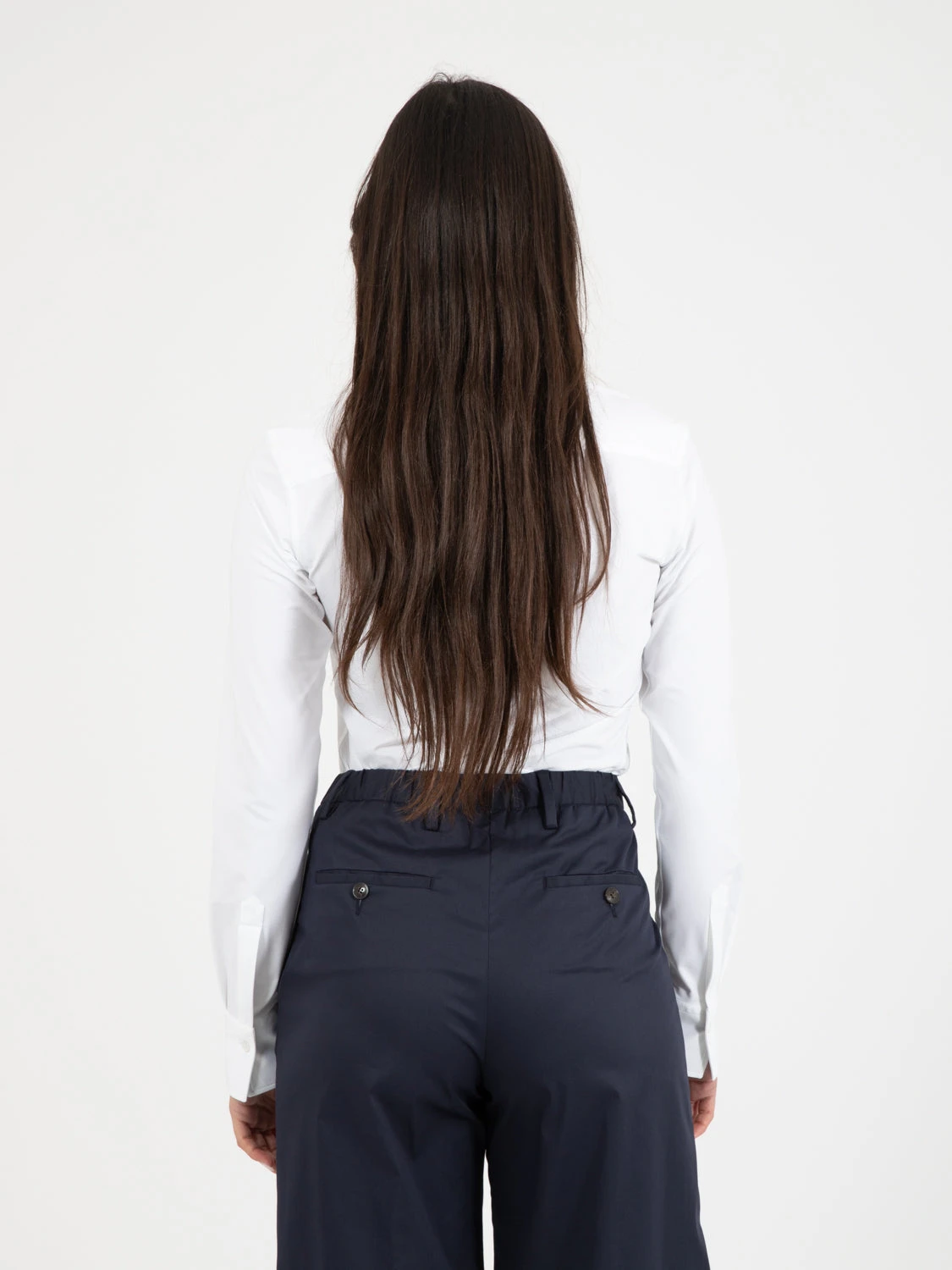 Colletto italiano, maniche lunghe e polsini con bottoni.