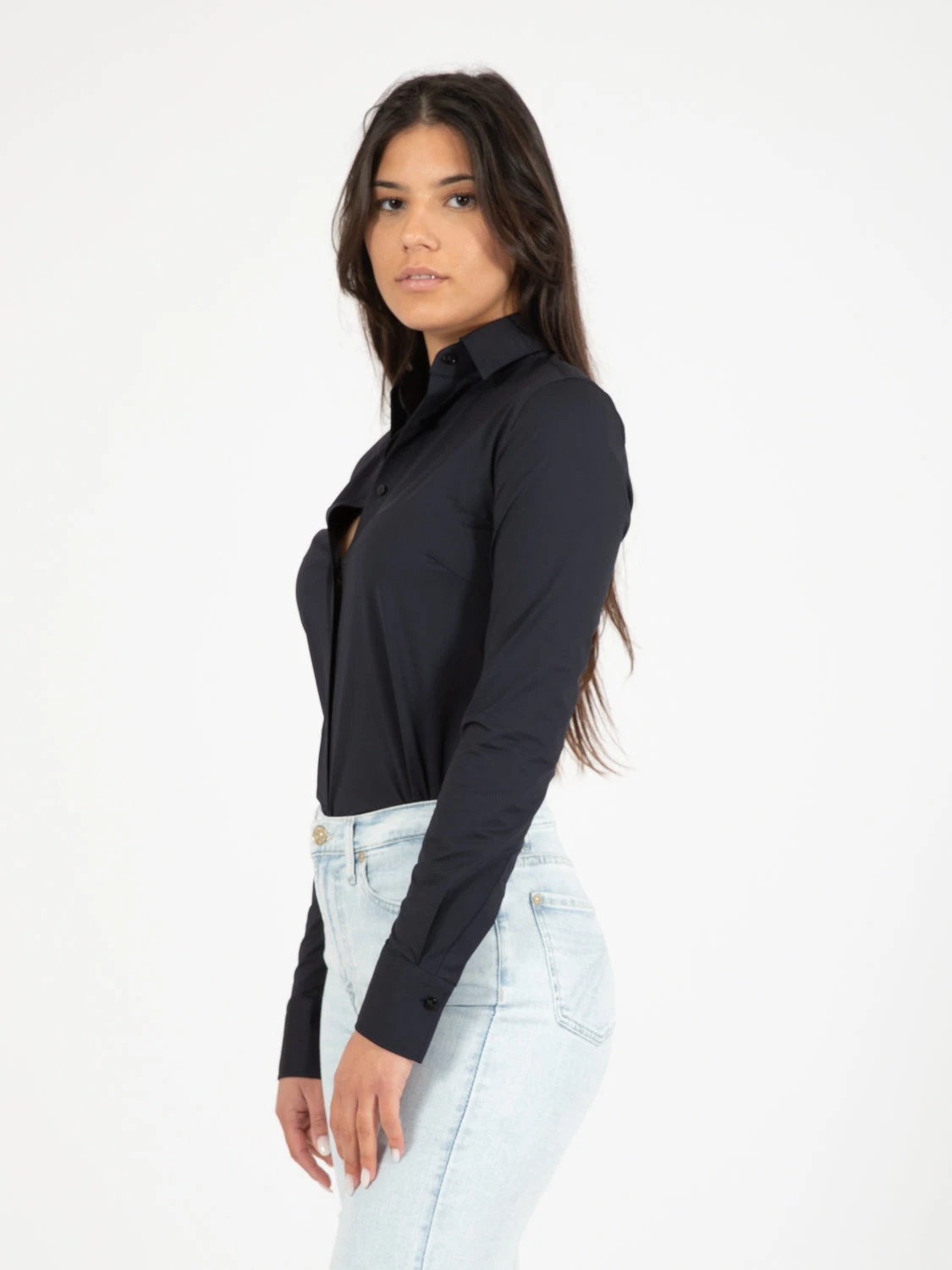 Colletto italiano, maniche lunghe e polsini con bottoni.